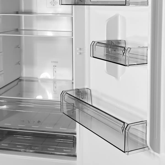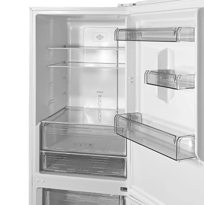 Эффективное охлаждение и замораживание: Система No Frost обеспечивает равномерное охлаждение и предотвращает образование льда, что значительно упрощает уход за холодильником.