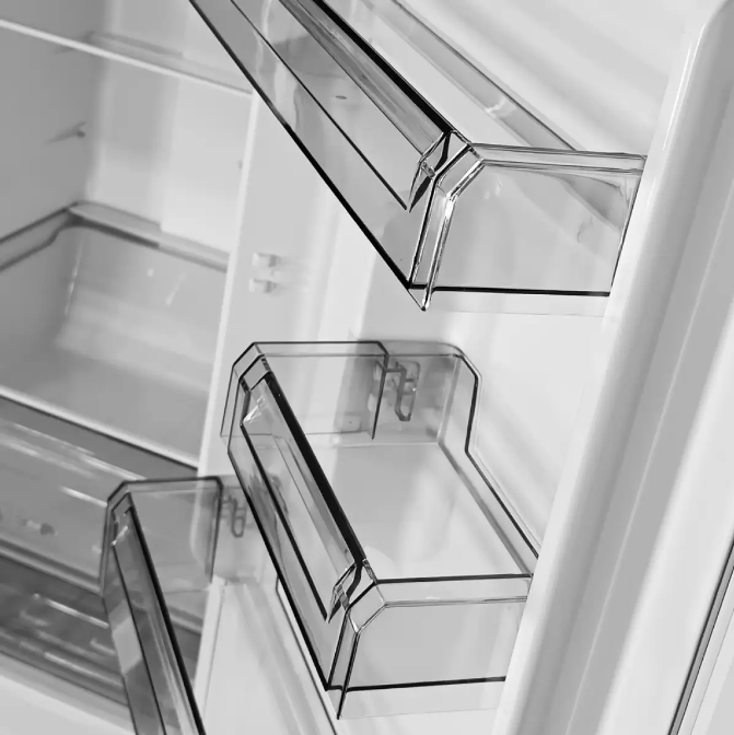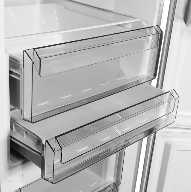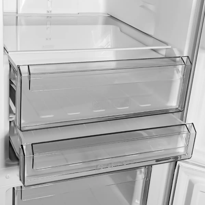 Оптимальное хранение продуктов: Нижнее размещение морозильной камеры обеспечивает удобный доступ к замороженным продуктам, а большое количество полок и ящиков позволяет оптимально организовать пространство для хранения.