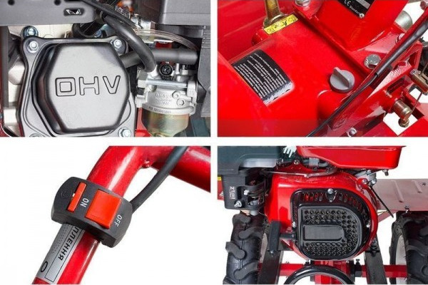 Четырехтактный двигатель агрегата оснащен воздушным охлаждением и способен развивать до 3600 оборотов в минуту. Объем топливного бака составляет 7 литров. Культиватор FORTE 1350G NEW (15 л.с) имеет три передачи для движения – две вперед и режим заднего хода. Агрегат оснащен прочными пневматическими колесами диаметром 12 дюймов. Вес машины составляет 178 кг.