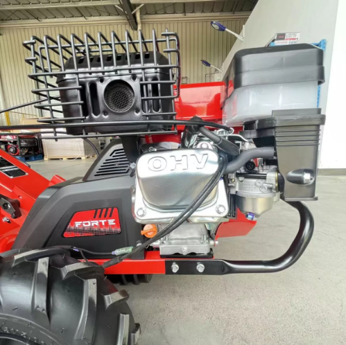 Культиватор Forte 500 оснащен четырехтактным двигателем внутреннего сгорания, что дает гарантию долгой, качественной роботы и экономного расхода топлива. Мощность двигателя - 7 лошадиных сил. При этом потребление топлива составляет 395 гр/кВт*час. Агрегат имеет трехступенчатую трансмиссию (две передние передачи и одна назад), ручной стартер, прочную стальную раму и регулируемые рукоятки. Техника надежно защищена от поломок и перегрева системой принудительного воздушного охлаждения.