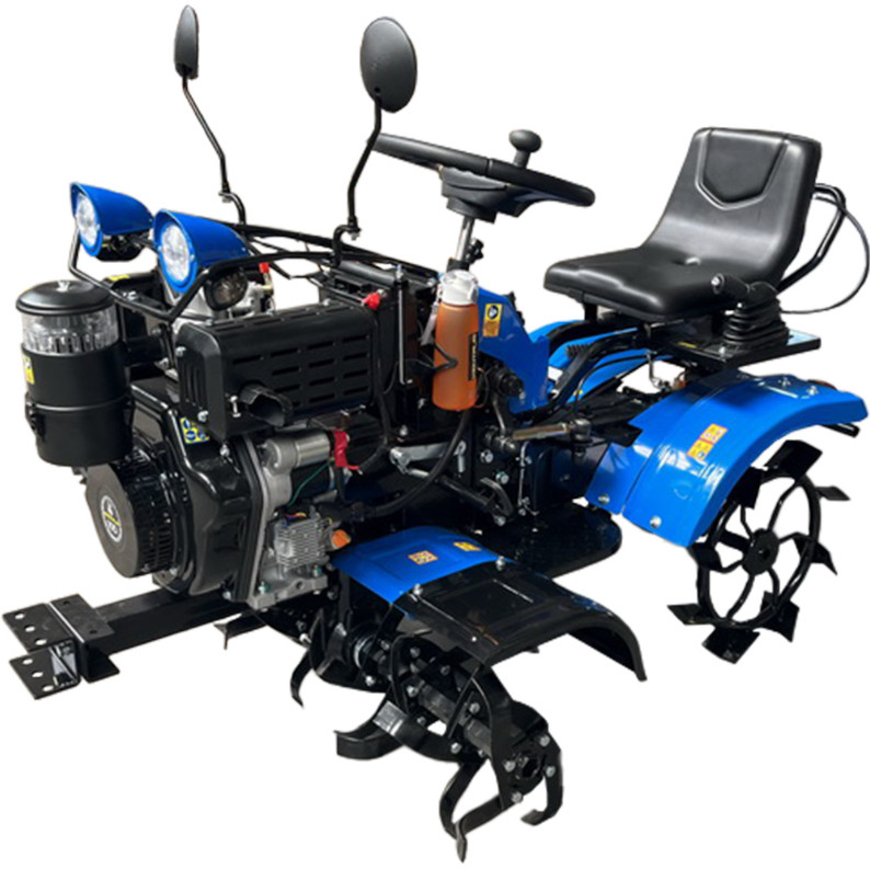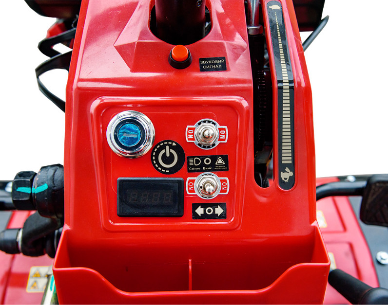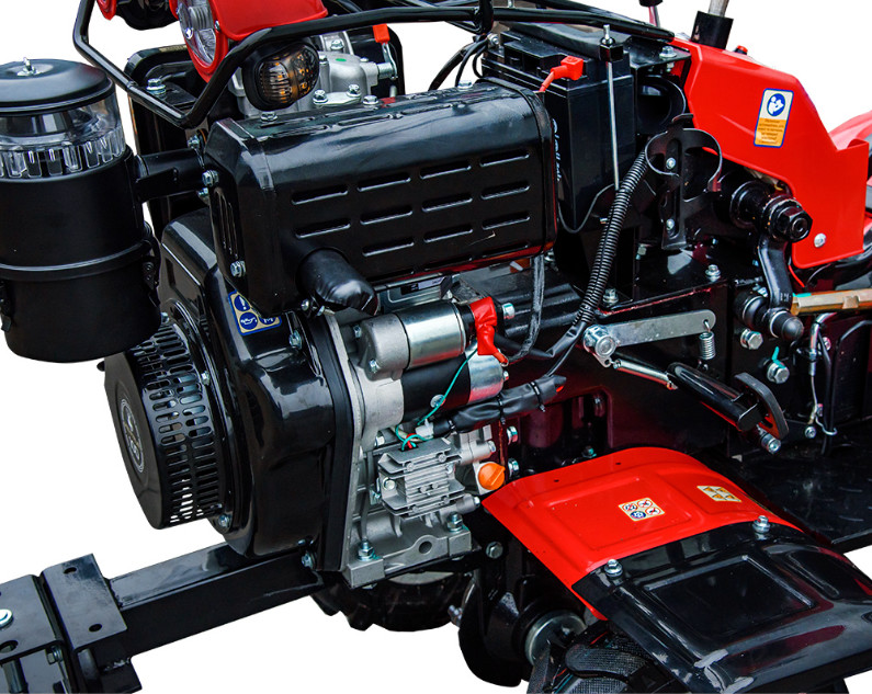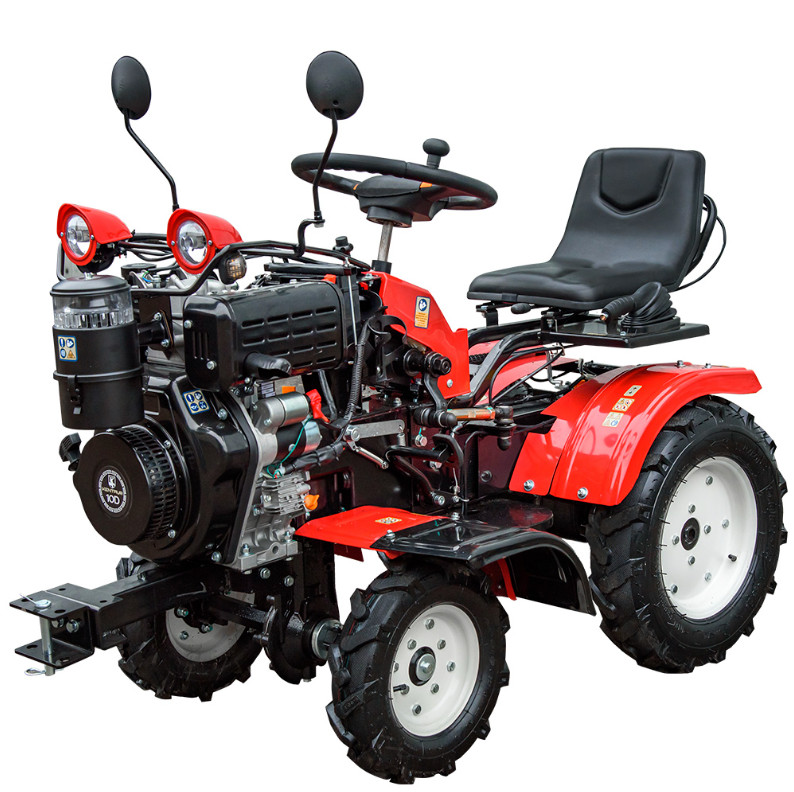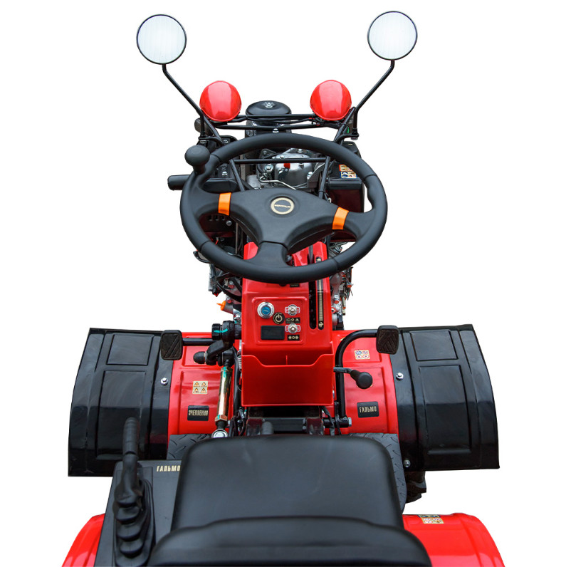 | Дополнительное оборудование | Фреза - 2 шт., почвозацепы - 2 шт., устройство подъема оси. Звуковой сигнал, аварийная сигнализация, зеркала заднего вида, передние и задние фары. Металлические задние и передние крылья, выхлопная труба с глушителем из нержавеющей стали. |